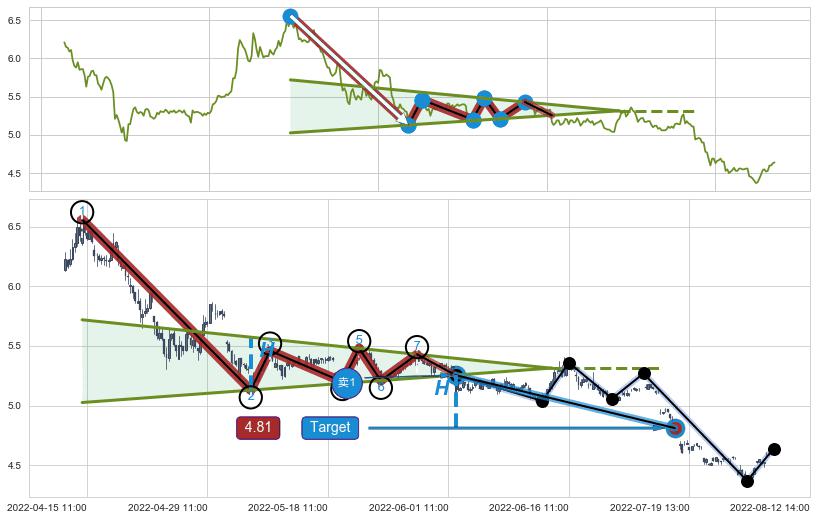 ➣ 【已达成】最小【整理】第一目标价格→(07-14:13: 4.81 ), 后续继续【整理】下跌动力微弱,下跌较小