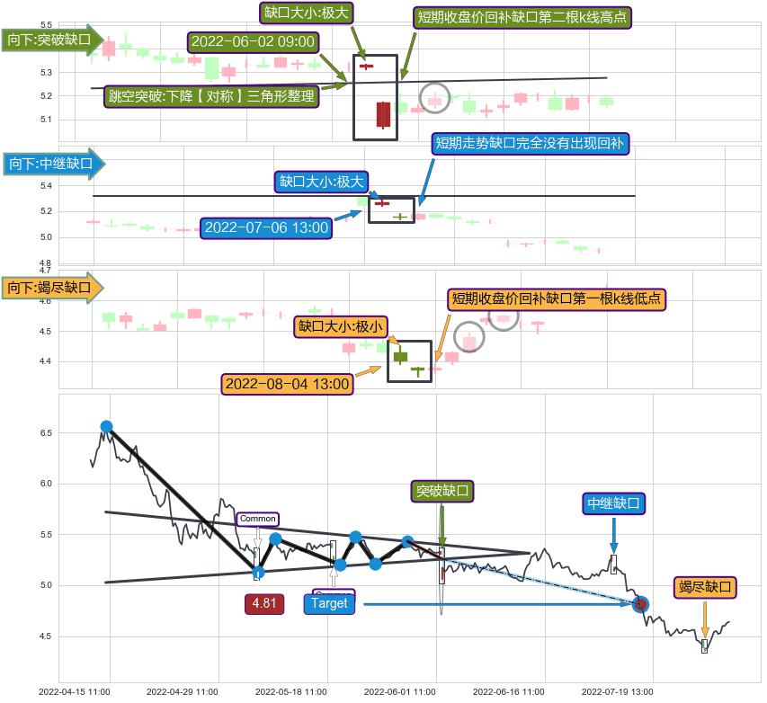 ➢ 2022-08-04 13:00形成:向下跳空【竭尽】缺口