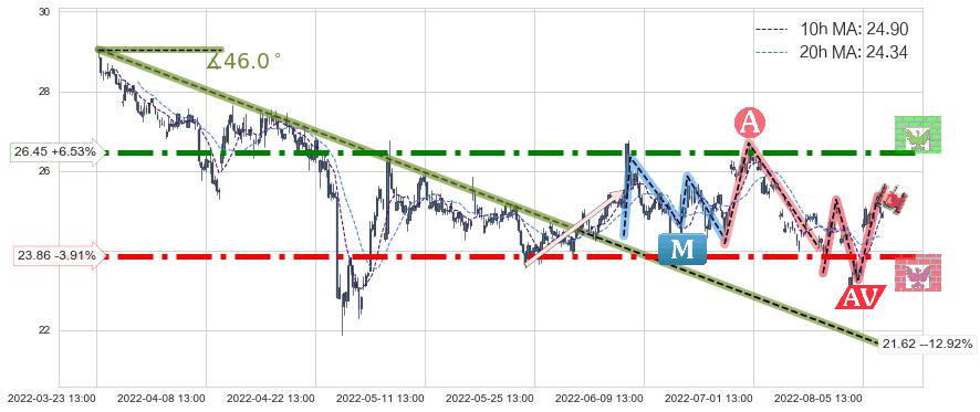♘ 阻力价格位26.45,可信任强度91.46%,距离最后交易2022-08-12 14:00形成的收盘价格24.83相差 +6.53%
