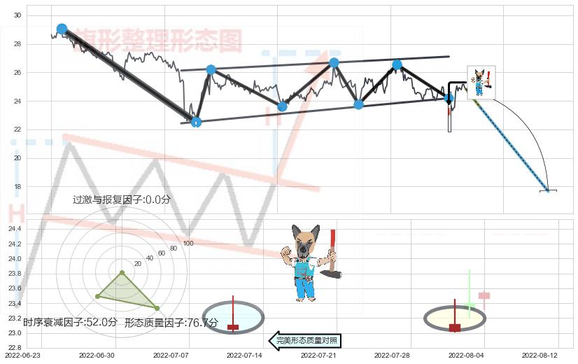 ➢ 看跌(高位倒锤头)流星线 🔜 升旗形支撑破位转换阻力下跌 综合量化分数:49.36 【中性】
