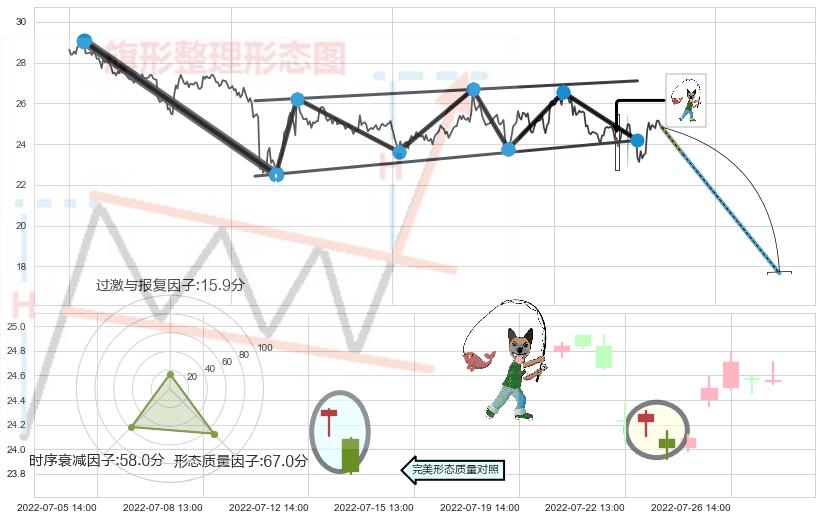 从2022-06-22 14:00至2022-07-25 13:00,共包含46个小时,阶段股价下跌-1.81%,阶段股价变动位移路程比: 1 : 21
