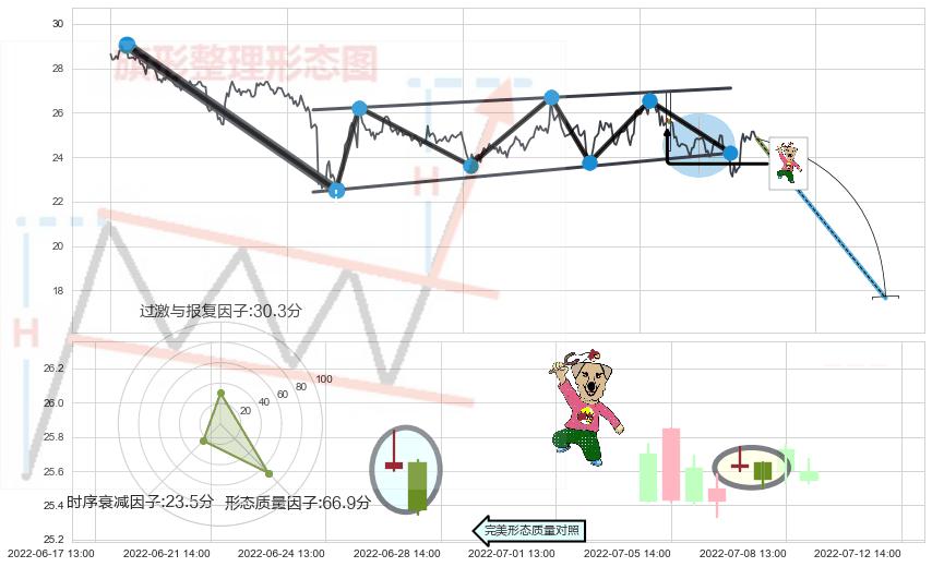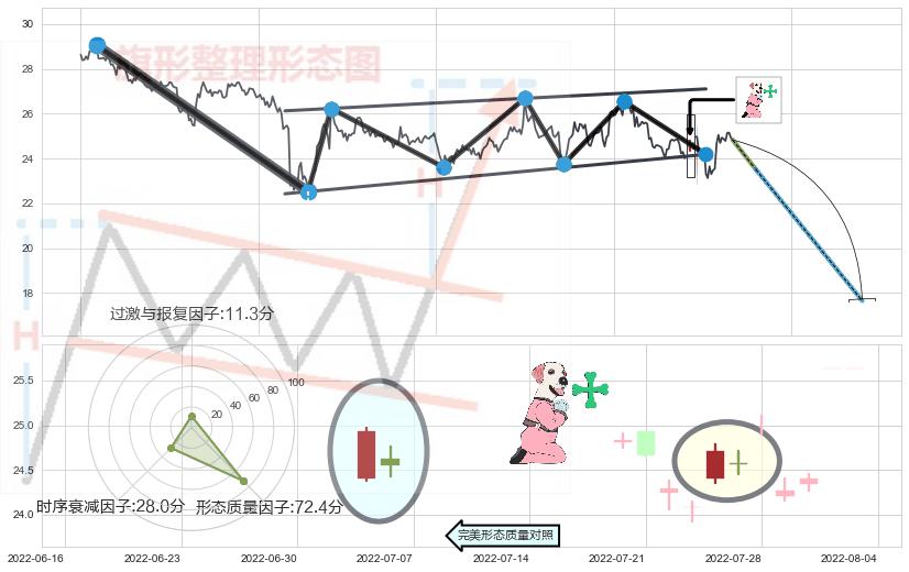 ➢ 射击之星形态 🔜 升旗形支撑破位转换阻力下跌 综合量化分数:41.81 【偏空】