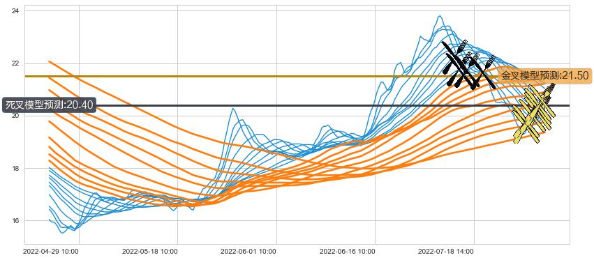 ➢ 60小时均线于(07-14 14:00: 21.70)形成【死叉】基于【死叉历史模型】预测死叉后最低波谷价格: 20.43, 死叉后最低价格19.13,已经下跌超出预测最低波谷价格, 预期反弹