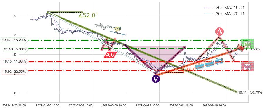 ♞ 20小时均线:19.91,30小时均线:20.11→ 快线<慢线