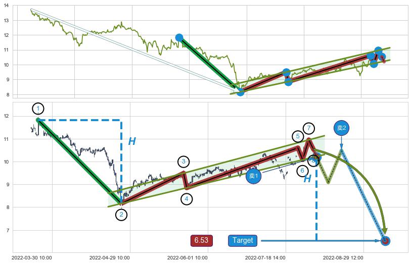 ➣ 最小中继整理跌幅→𝐇: 3.660 (𝐇旗杆的长度:旗杆起点→顶点)