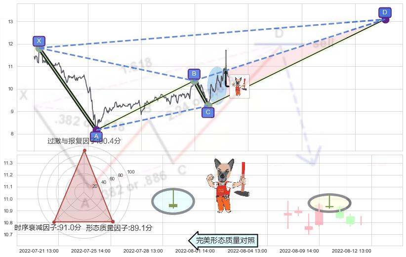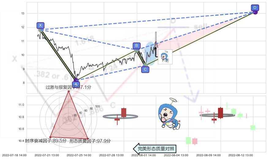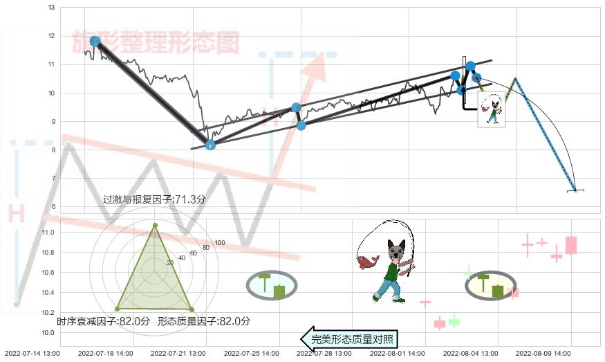 ➢ 🕰 价格走势在2022-08-09 13:00:00至2022-08-09 14:00:00期间形成上涨螺旋桨形态,残存影响值:8.38