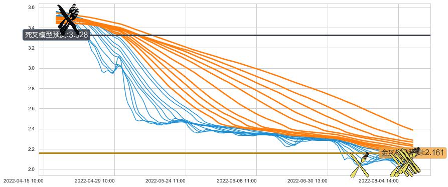 ➣ 160小时均线于(04-20 14:00: 3.452)形成【死叉】基于【死叉历史模型】预测死叉后最低波谷价格: 3.320, 死叉后最低价格2.010,已经下跌超出预测最低波谷价格, 预期反弹