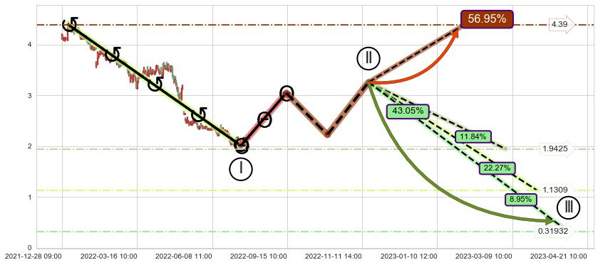 ➣ 大趋势循环浪继续向下概率43.05%