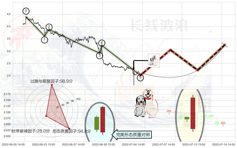 ➢ 🕰 价格走势在2022-07-12 14:00:00至2022-07-12 14:00:00期间形成单针探底(定海神针),残存影响值:5.14