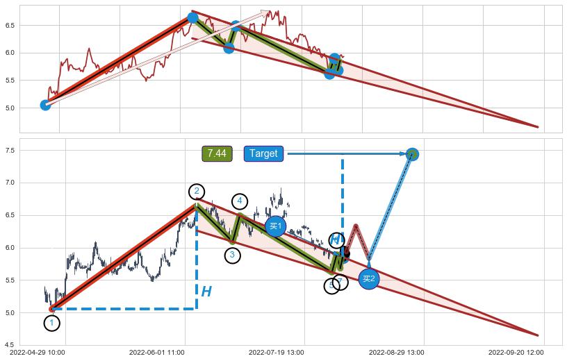 ➢ 最小中继整理涨幅→𝐇: 1.5900 (𝐇楔型旗杆的长度:楔型起点→顶点)