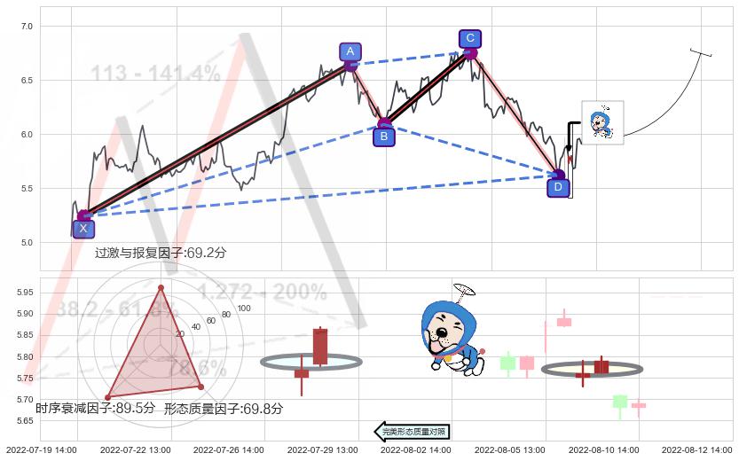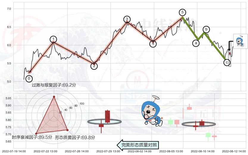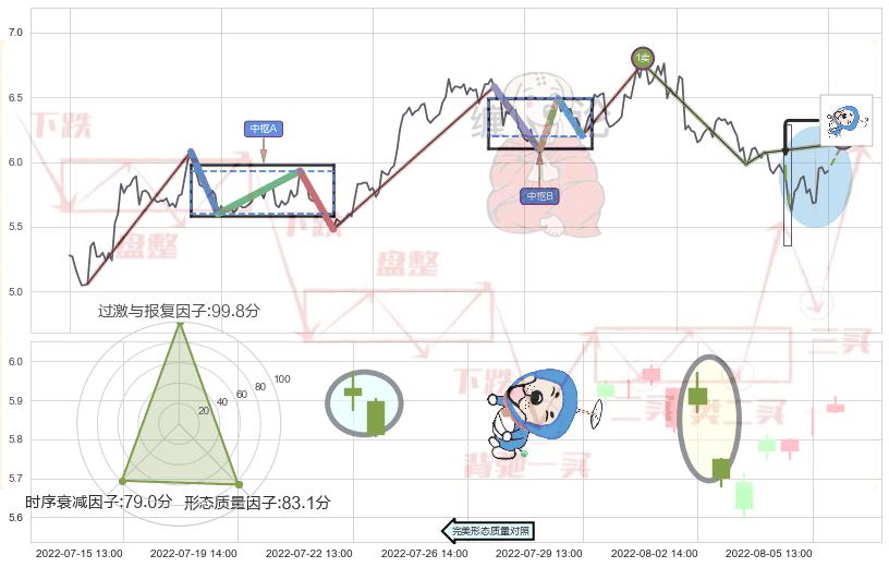 ➢ 🕰 价格走势在2022-08-09 13:00:00至2022-08-09 14:00:00期间形成上涨螺旋桨形态,残存影响值:6.64