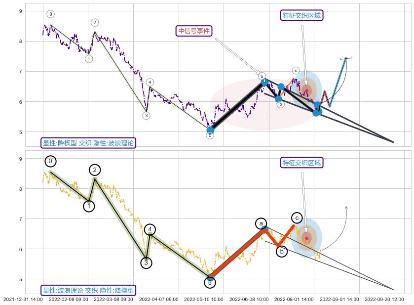 ➣ 波浪理论:猜想击穿破位c点后继续下跌 → 下跌 → 风险信号 → 小趋势跟踪