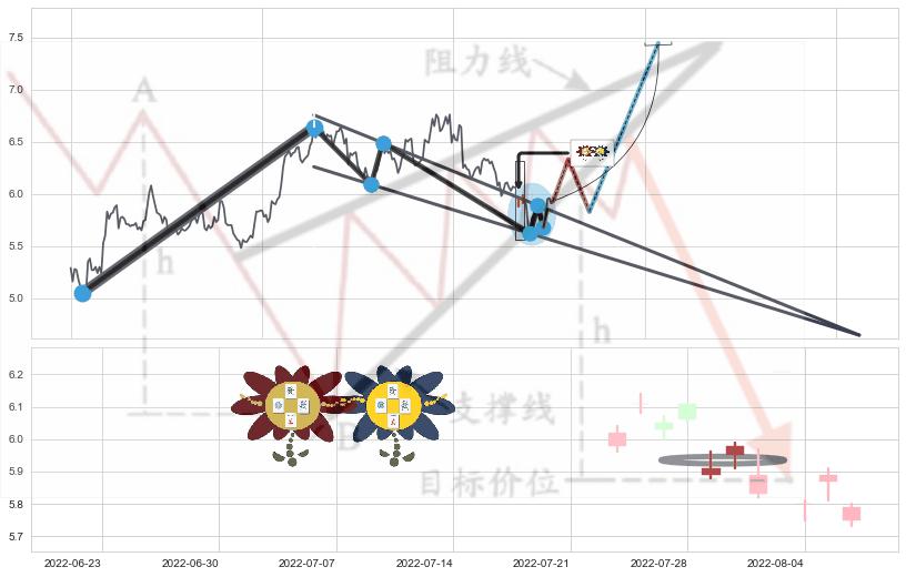 ♘ 阻力价格位6.11,可信任强度67.91%,距离最后交易2022-08-12 14:00形成的收盘价格5.93相差 +3.00%