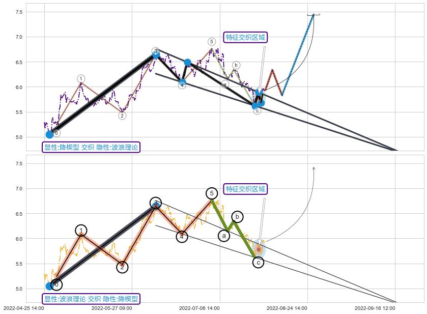 ➣ ['回调abc识别为: 【锯齿型调整浪】 ', '锯齿型:子浪535结构 ⓑ点振幅较小,ⓒ点继续发力远超ⓐ点结束位置']