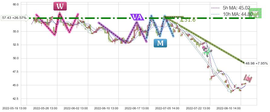➣ 预测:2022-08-22 11:00,【继续下探】稳定目前下跌趋势的前提下,预测价格:41.34