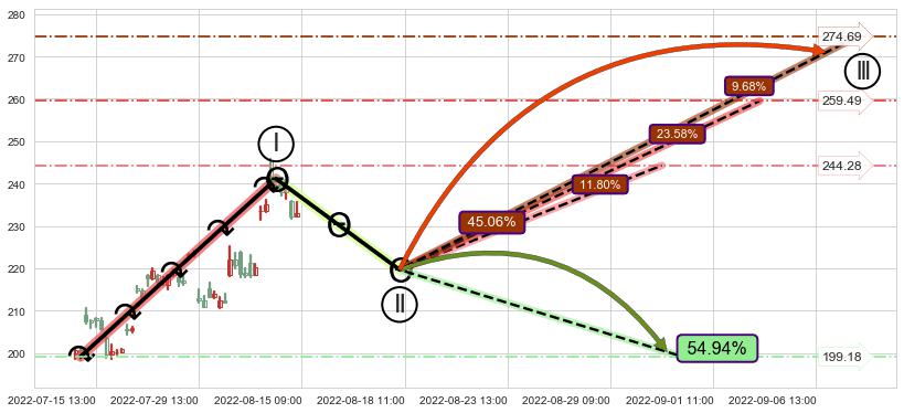 2022-07-13: 第一支撑位199.88有效抑制了下跌浪,成功阻止了价格的继续下跌。