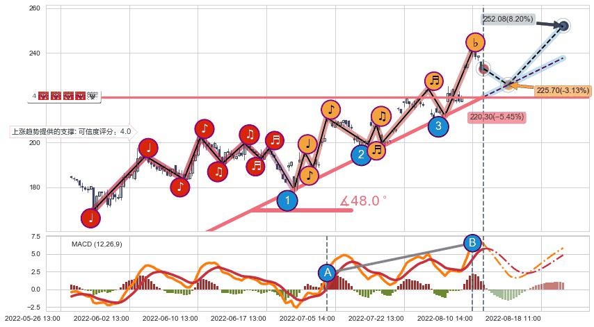 ➣ 预测:2022-08-19 13:00,【继续上扬】稳定目前上涨趋势的前提下,预测价格:252.08