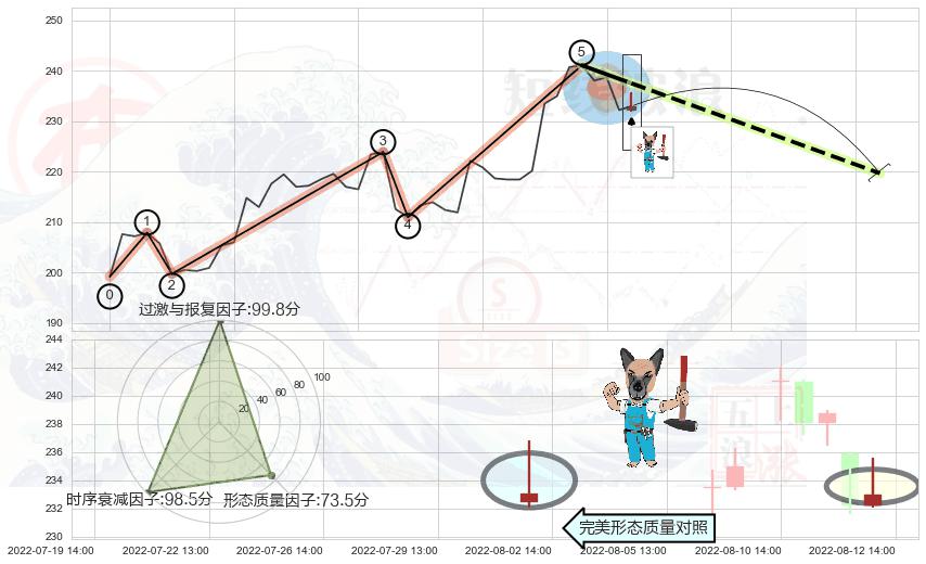 ➢ 🕰 价格走势在2022-08-12 14:00:00至2022-08-12 14:00:00期间形成看跌(高位倒锤头)流星线,残存影响值:-8.62