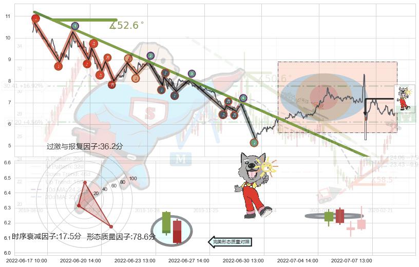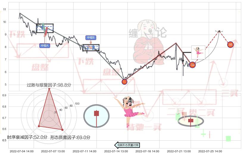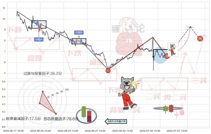 从2022-06-07 10:00至2022-07-13 14:00,共包含80个小时,阶段股价下跌-2.42%,阶段股价变动位移路程比: 1 : 45