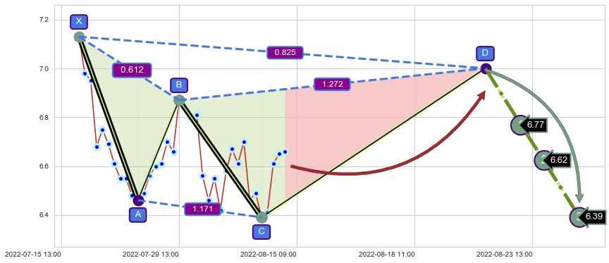 ➣ 未完成【赛福】形态起点X: 07-18:14, 已到达C点: 08-10:13, 预测最终D点: 08-22:11, 共69交易小时