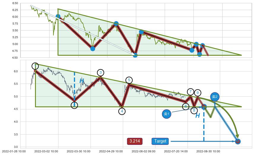 ➢ 【仅预测突破】最后价格:4.95与预测突破价格:4.59→【空间较大】后续最小【整理】第一目标价格→(09-12:11: 3.214 )