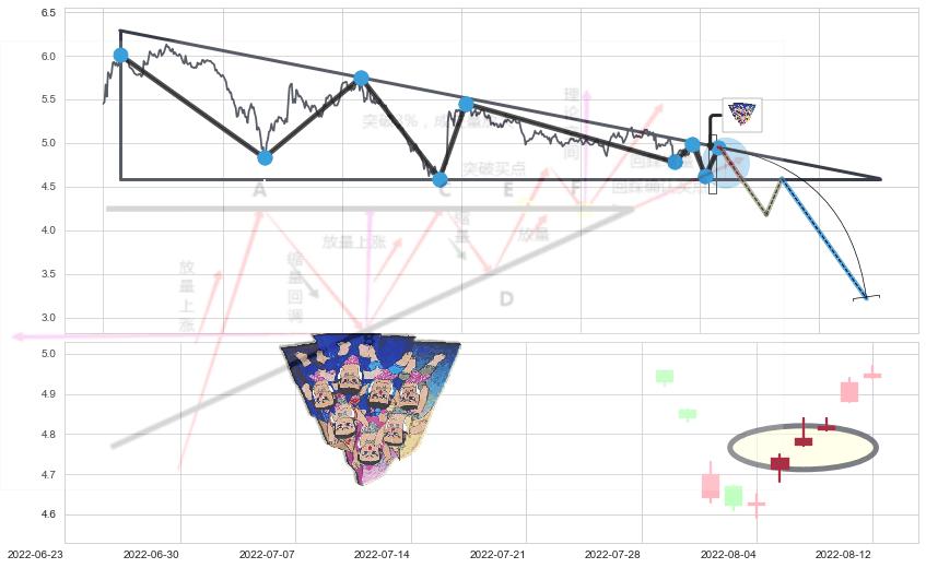 ♘ 阻力价格位5.42,可信任强度57.66%,距离最后交易2022-08-12 14:00形成的收盘价格4.95相差 +9.48%
