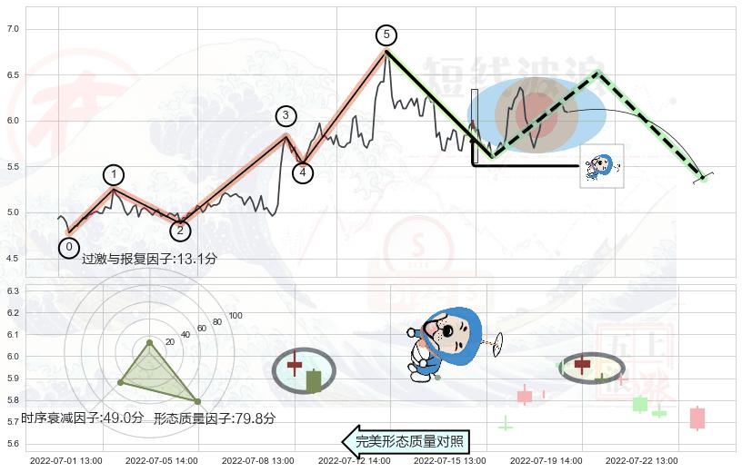 从2022-07-12 14:00至2022-07-22 13:00,共包含16个小时,阶段股价上涨0.22%,阶段股价变动位移路程比: 1 : 88