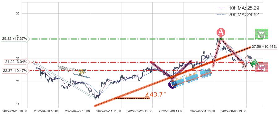 ♘ 阻力价格位29.32,可信任强度55.79%,距离最后交易2022-08-12 14:00形成的收盘价格24.98相差 +17.37%