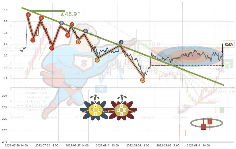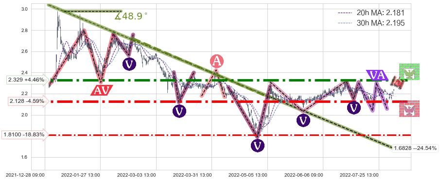 ♘ 阻力价格位2.329,可信任强度88.38%,距离最后交易2022-08-12 14:00形成的收盘价格2.230相差 +4.46%