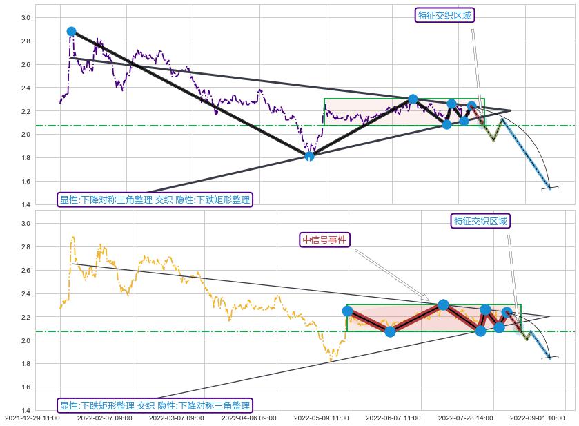 ➢ 下跌矩形整理属【中级别信号事件】下降对称三角整理属【长级别信号事件】中长周期组合信号事件,中长事件长度比36.92%