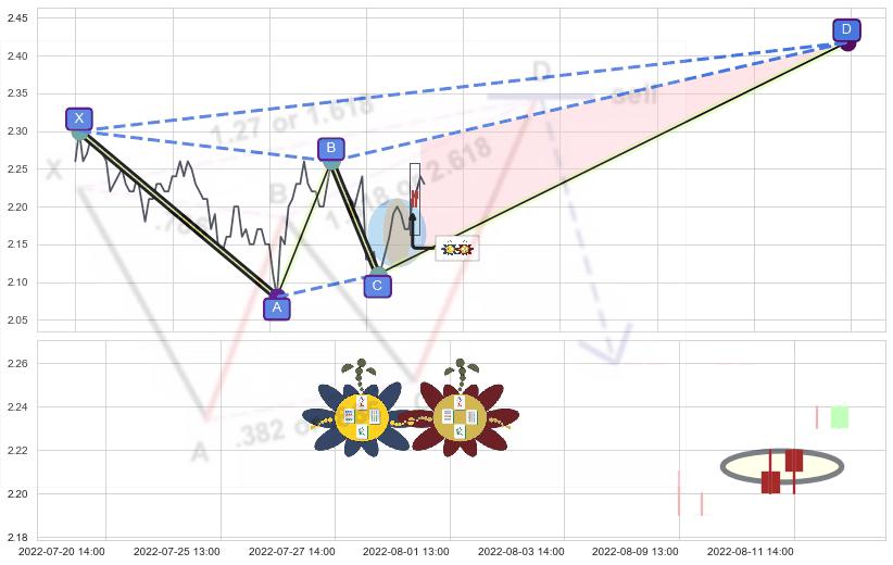 ➣ 未完成【蝴蝶】形态起点X: 06-15:13, 已到达C点: 08-03:14, 预测最终D点: 09-08:09, 共198交易小时