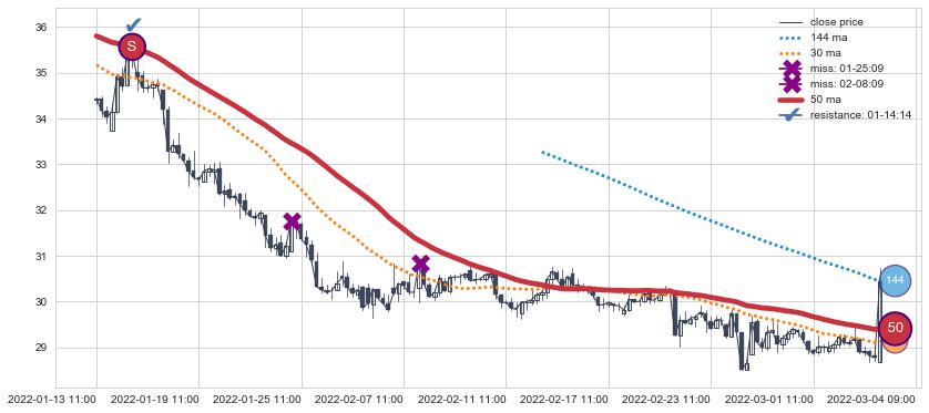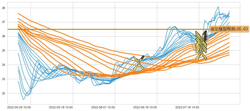 ➣ 70小时均线于(07-19 14:00: 25.49)形成【金叉】基于【金叉历史模型】预测金叉后最高波峰价格: 26.99, 金叉后最高价格28.69,已经上涨超出预测最高波峰价格, 预期回调