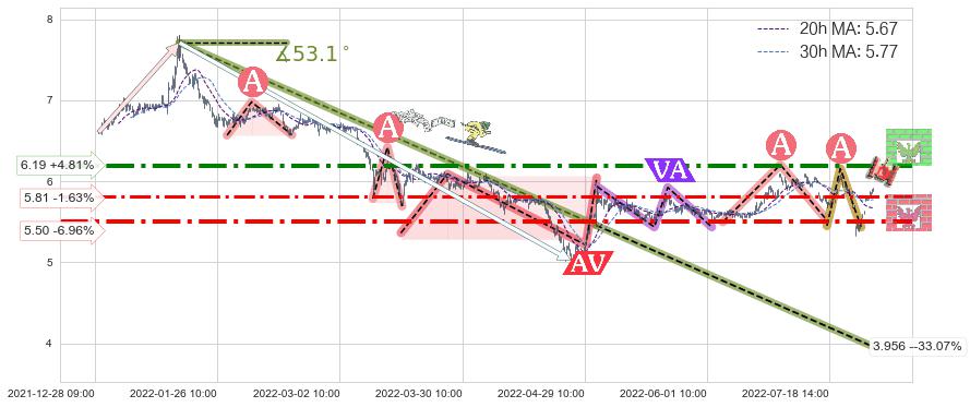♞ 20小时均线:5.67,30小时均线:5.77→ 快线<慢线