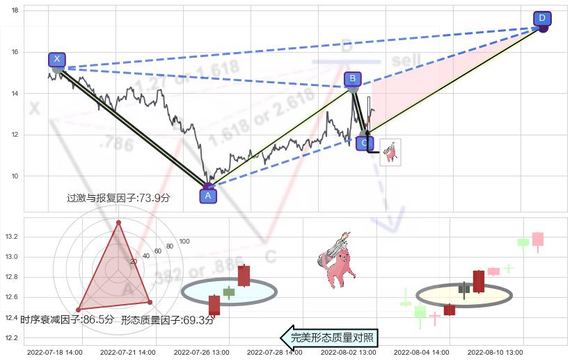 ➢ 上涨镊子线(U形磁铁) 🔜 谐波蝴蝶c拐点上涨支撑 综合量化分数:61.80 【偏多】