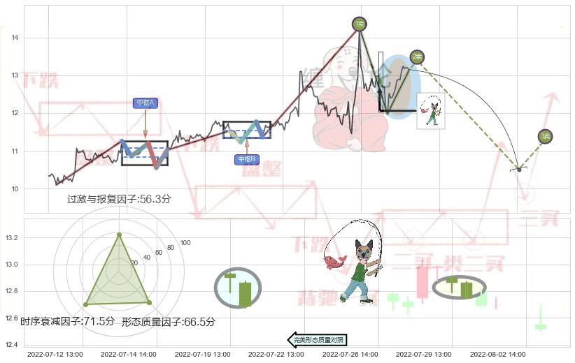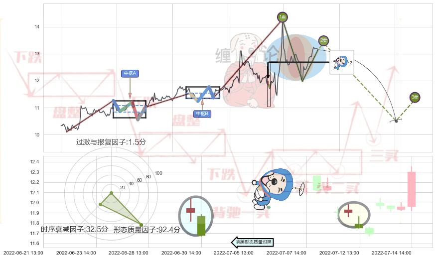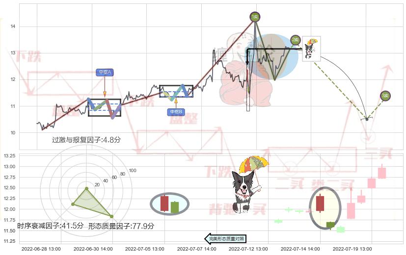 ➢ 🕰 价格走势在2022-07-11 14:00:00至2022-07-12 13:00:00期间形成下跌螺旋桨,残存影响值:-2.37