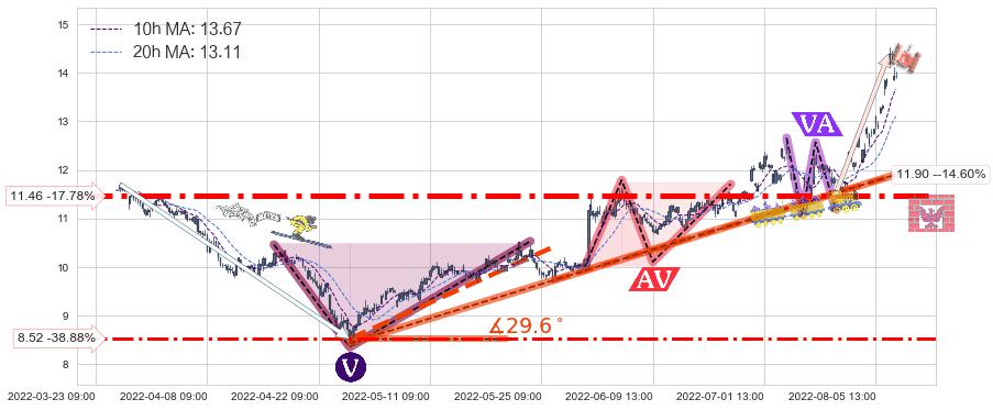 ♘ 支撑价格位11.46,可信任强度90.85%,距离最后交易2022-08-12 14:00形成的收盘价格13.94相差 -17.78%