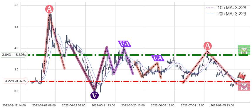 ♘ 阻力价格位3.843,可信任强度95.21%,距离最后交易2022-08-12 14:00形成的收盘价格3.240相差 +18.60%