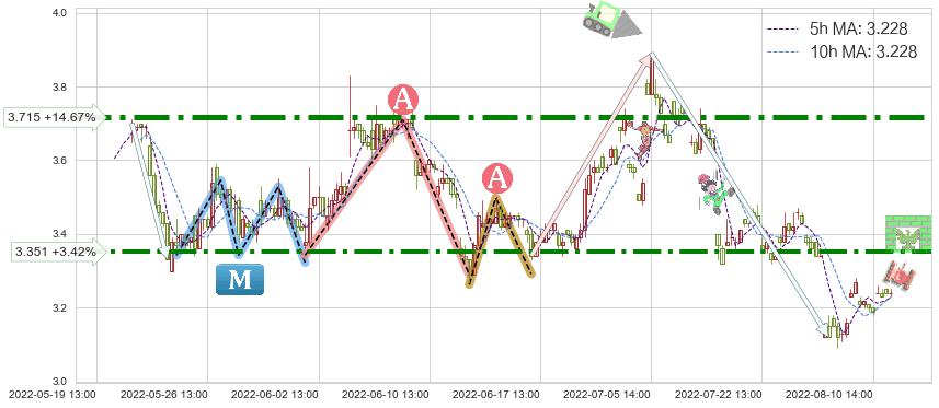 ♘ 阻力价格位3.351,可信任强度84.47%,距离最后交易2022-08-12 14:00形成的收盘价格3.240相差 +3.42%