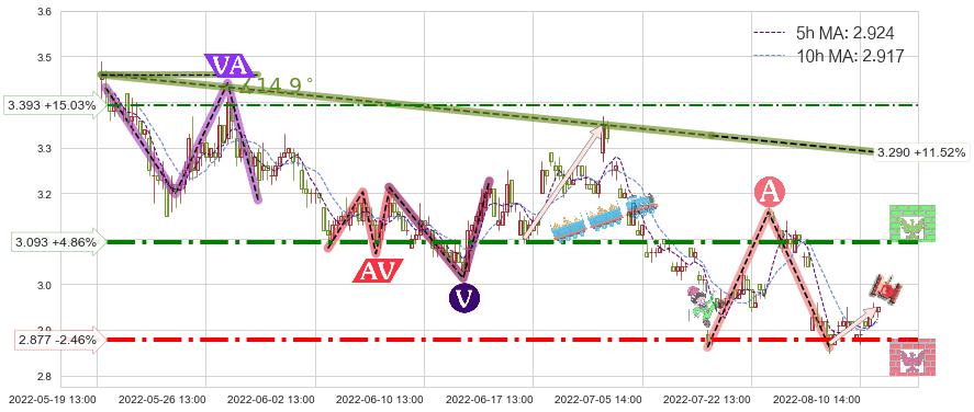 ➢ 【已确认突破】最后价格:2.950与最小【整理】第一目标价格→(08-15:13: 2.840 )相较: 下跌空间【较小】
