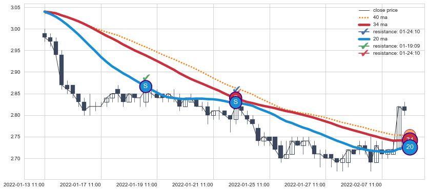 📝 多条均线形成死叉后走势最低价格达到: 2.300