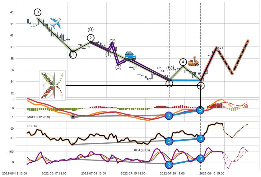 ➣ MACD, RSI, KDJ走势都出现【常规背离】反转信号增强