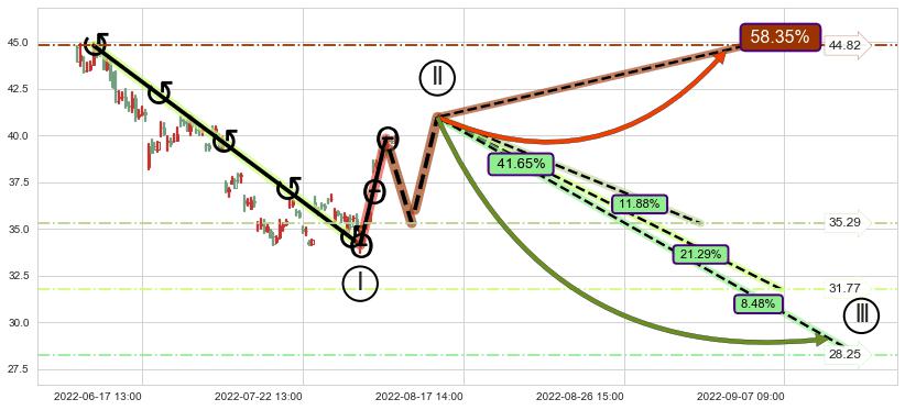 ➣ 大趋势循环浪继续向下概率41.65%