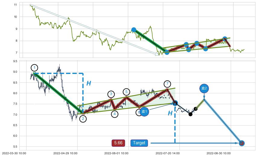 ➣ 最小中继整理跌幅→𝐇: 1.8800 (𝐇旗杆的长度:旗杆起点→顶点)