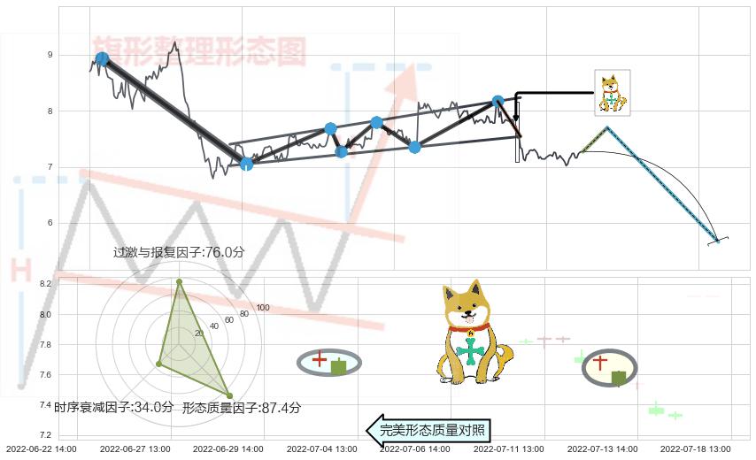 从2022-01-04 10:00至2022-05-13 09:00,共包含414个小时,阶段股价下跌-37.88%,阶段股价变动位移路程比: 1 : 10,下跌趋势角度: 35.6
