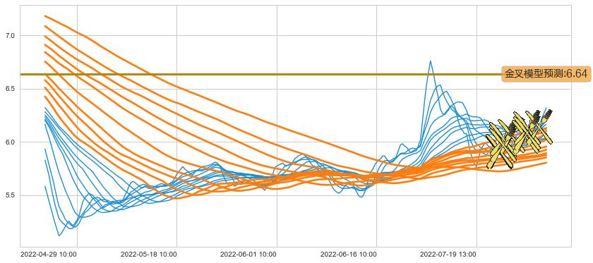 ➢ 10小时均线于(07-26 14:00: 5.90)形成【金叉】基于【金叉历史模型】预测金叉后最高波峰价格: 6.20, 金叉后最高价格6.39,已经上涨超出预测最高波峰价格, 预期回调