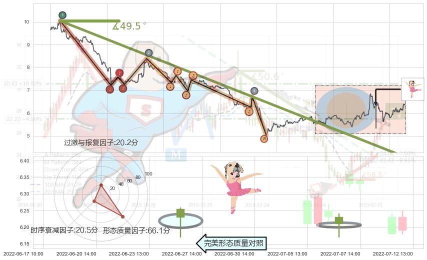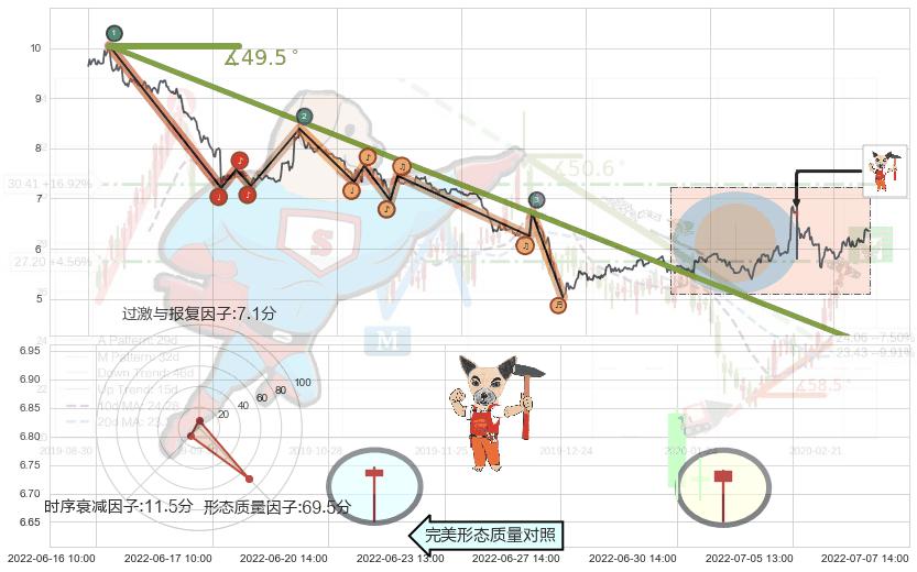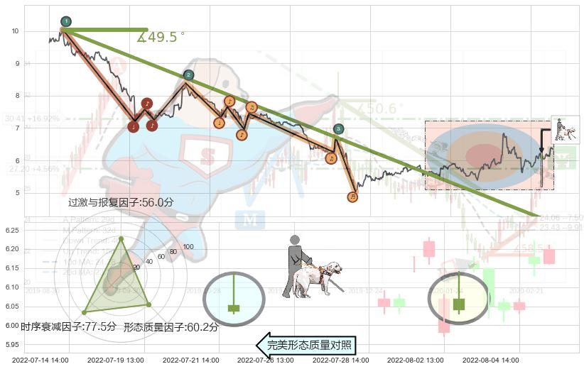 从2022-01-04 14:00至2022-05-11 10:00,共包含402个小时,阶段股价下跌-54.80%,阶段股价变动位移路程比: 1 : 5,下跌趋势角度: 49.5
