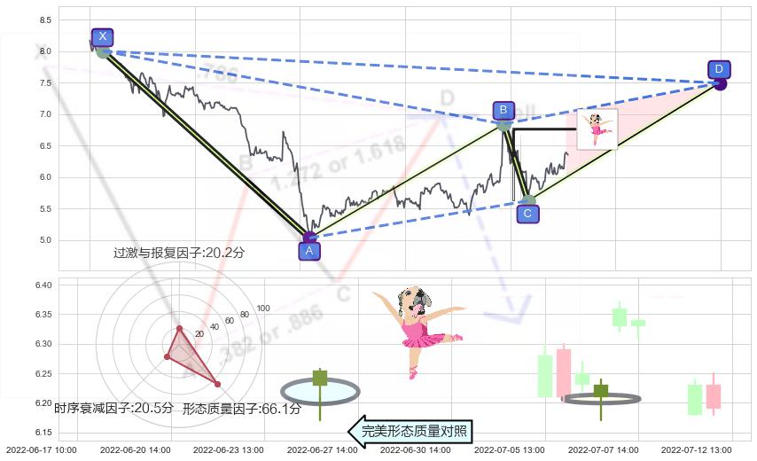 ➣ BC回撤位置在AB的67.4%,符合形态要求