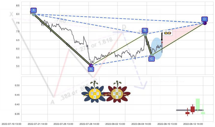 ➣ 谐波伽利:b下跌接近c:猜想支撑性拉升 → 上涨 →【拐点】支撑临近 → 大趋势均值回复