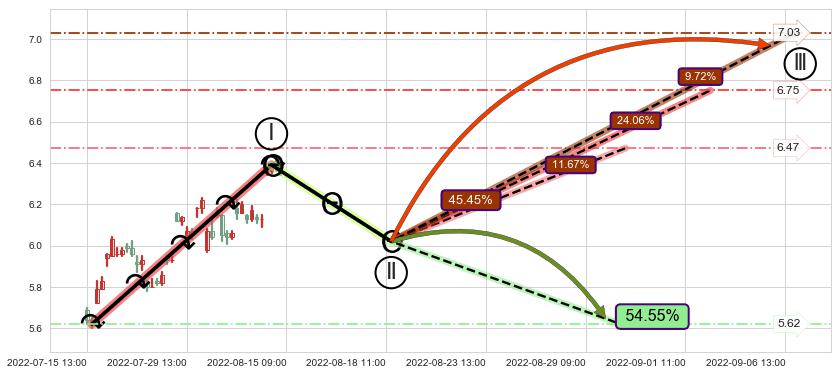 ➢ 循环浪继续向上【最低】位置(08-30:11, 6.47),匹配聚类样本比例25.67%, 可能性概率11.67%