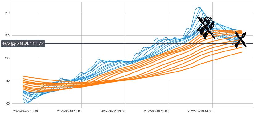 ➣ 70小时均线于(07-15 14:00: 123.40)形成【死叉】基于【死叉历史模型】预测死叉后最低波谷价格: 113.78, 死叉后最低价格109.80,已经下跌超出预测最低波谷价格, 预期反弹